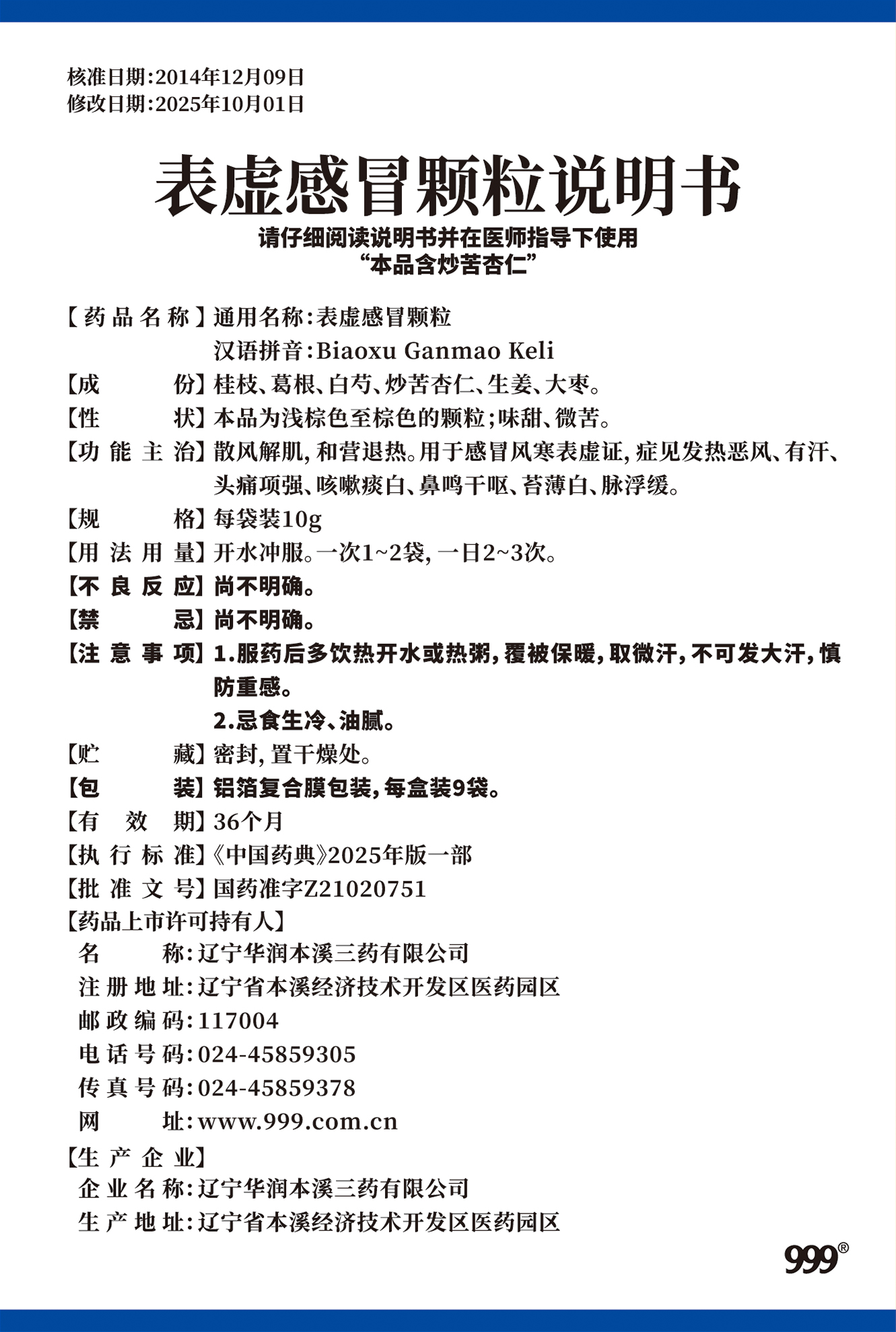 表虚感冒颗粒10克x9袋