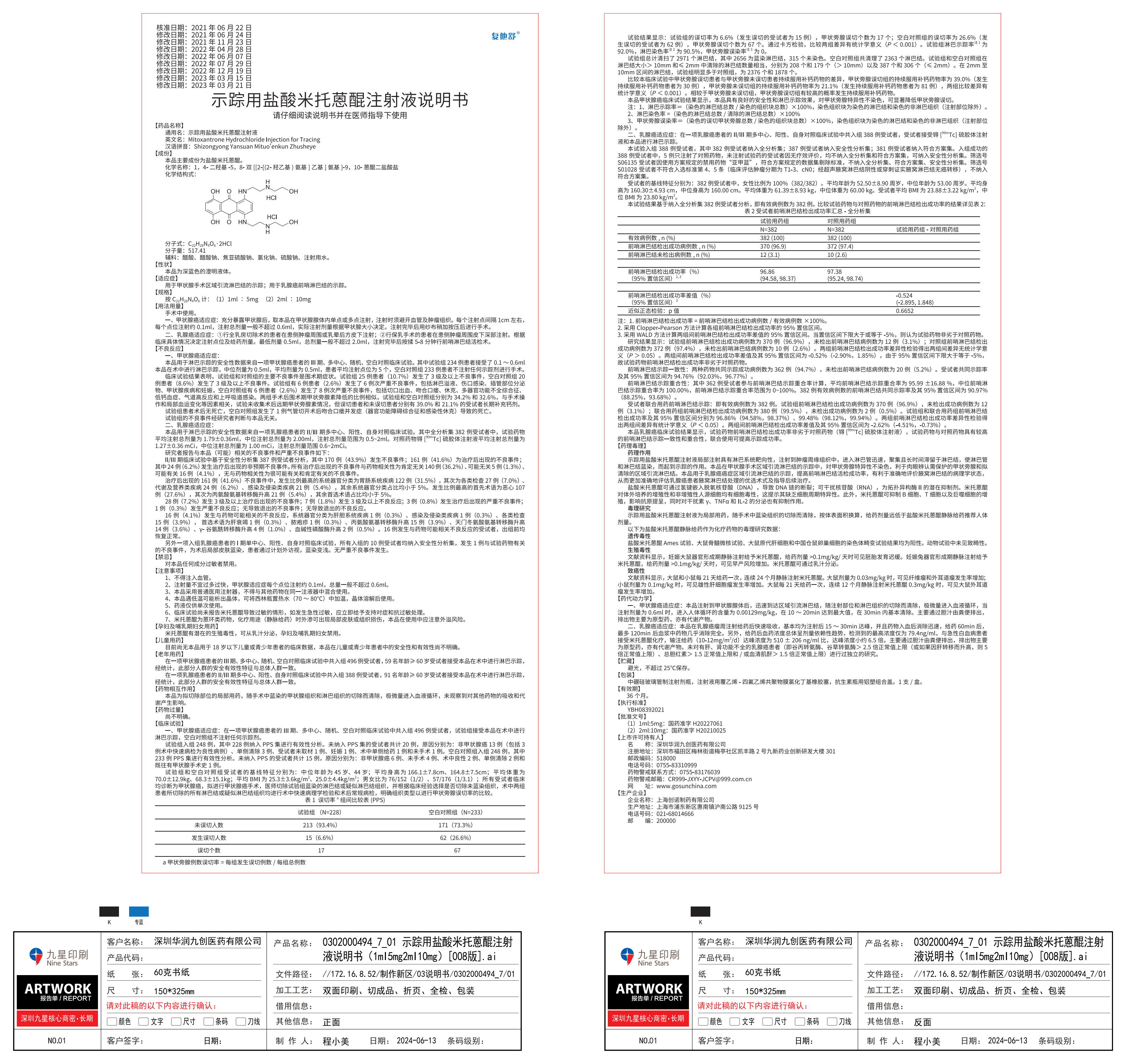 示踪用盐酸米托蒽醌注射液说明书