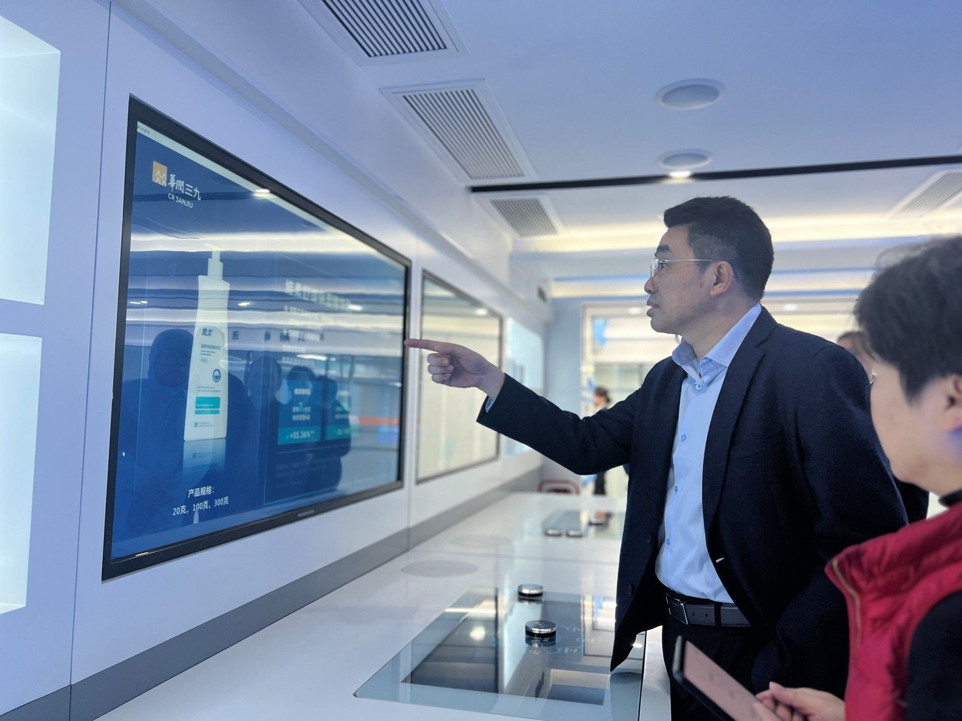 邱华伟首先深刻华润顺峰医护通明工厂现场查看 ,实地相识华润顺峰医护车间建设情况以及产品出产流程 。
