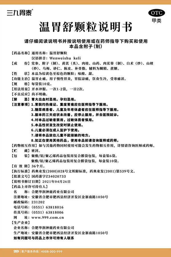 温胃舒颗粒 10g x 10袋