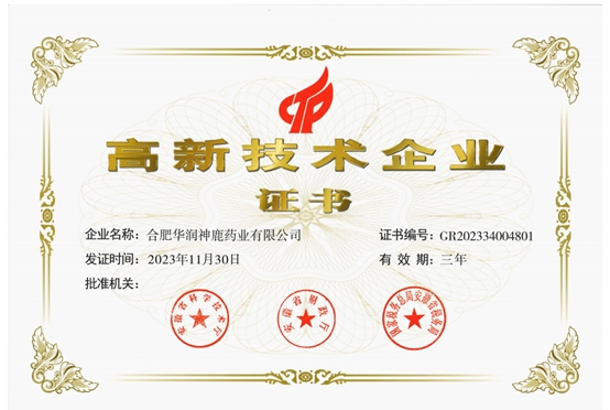 2024年1月18日 ,合肥华润神鹿药业有限公司获安徽省科技厅、财政厅和税务局宣告的高新技术企业证书 ,标志取华润神鹿顺利通过“高新技术企业”沉新认定。依照《高新技术企业认定治理法子》(国科发火[2016]32号)要求 ,高新技术企业认定每三年沉新认定一次 ,2023年是华润神鹿第六次发展高新技术企业认定。自2008年至今 ,已陆续15年认定为高新技术企业 ,标志华润神鹿科技组织治理水平、科研成就转化能力、自主研发出产的产品得到国度科技部门的充分认可。下一步 ,华润神鹿将进一步加大科技创新投入 ,加强科技创新人才行列建设 ,加快科技创新成就转化 ,不休提升科技创新活力与能力 ,持续推动企业高质量发展。